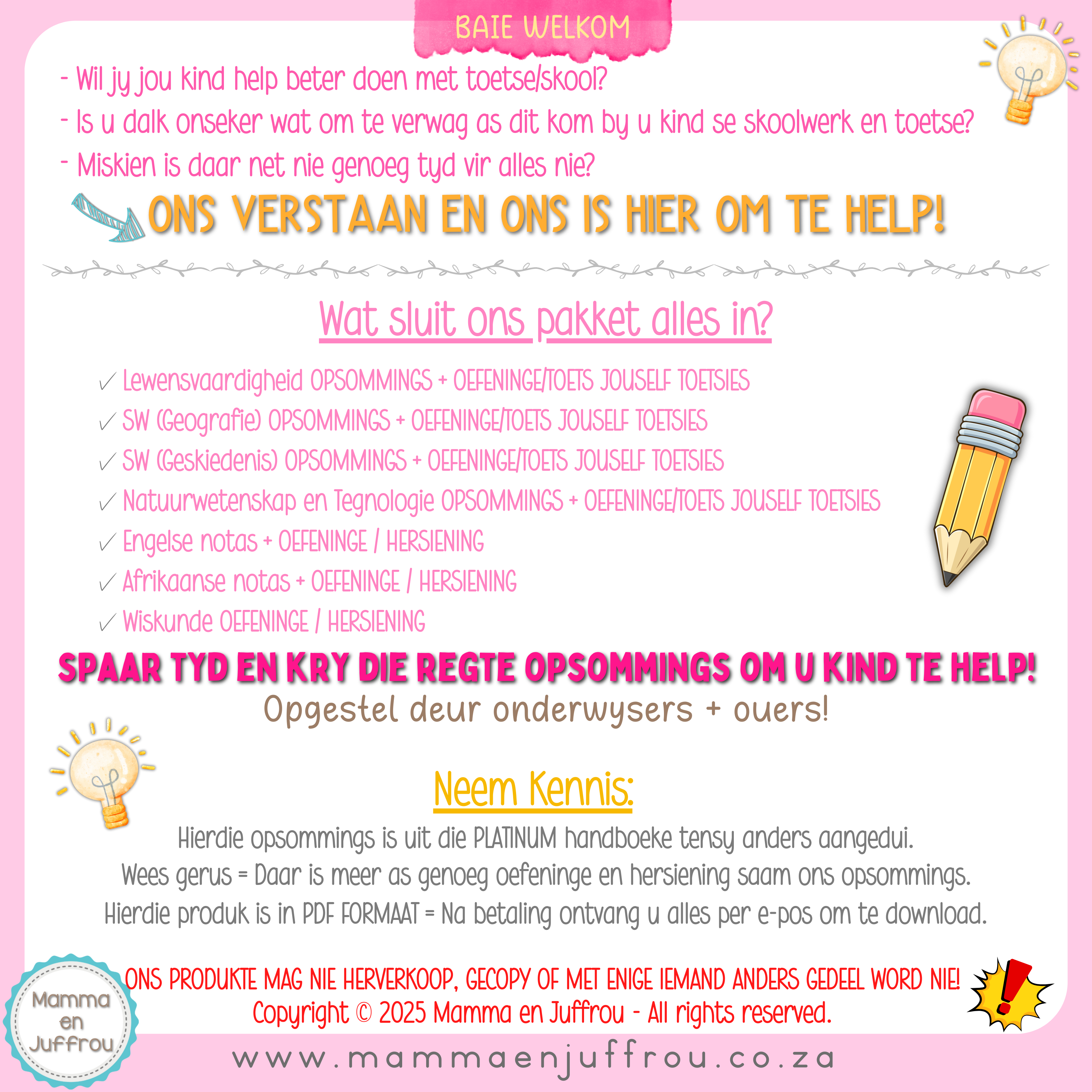 Die heel eerste jaar wat U kind moet leer en TOETSE skryf!